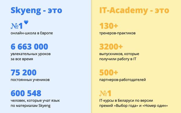После окончания курсов IT-Academy теперь можно не только воспользоваться возможностями «Программы трудоустройства», но и пройти онлайн-курс английского для поиска работы и первых шагов в IT-карьере по партнёрской программе Skyeng. Эксклюзивное предложение для выпускников IT-Academy – скидка на курс 27 процентов!